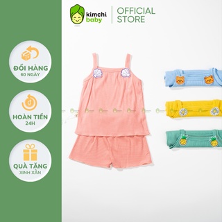 Đồ Bộ Bé Gái, Bé Trai KIMCHIBABY Vải Thun Lạnh Hoạ Tiết Con Mắt Tai Thú, Bộ Ba Lỗ Cho Bé Mặc Nhà KW2208