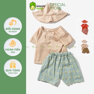 [KÈM MŨ] Set Bộ Thô Đũi Trơn Bé Trai Cúc Ngực Quần Kẻ, Bộ Quần Áo Cho Bé Mặc Đi Chơi CK21
