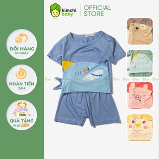 Đồ Bộ Bé Gái, Bé Trai KIMCHIBABY Vải Thun Lạnh Hoạ Tiết Tai Thú 3D, Bộ Cộc Tay Mặc Nhà Cho Bé KW2202
