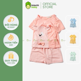 Đồ Bộ Bé Gái, Bé Trai KIMCHIBABY Vải Thun Lạnh Hoạ Tiết Gấu Dễ Thương, Bộ Cộc Tay Mặc Nhà Cho Bé KW2206