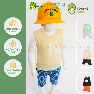 Bộ Cộc Tay Cho Bé Trai, Bé Gái KIMCHIBABY Vải Thun Lạnh Hoạ Tiết Gấu Dễ Thương, Bộ Quần Áo Trẻ Em Mặc Nhà KW2206