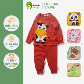 Bộ Thun Gân Dài Tay Cho Bé Gái, Bé Trai KIMCHIBABY Tay Giáp Lăng Cổ Viền, Bộ Quần Áo Cho Bé Mặc Nhà MKMTD2242