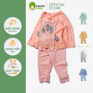 Bộ Dài Tay Bé Gái, Bé Trai KIMCHIBABY Vải Thun Lạnh Hoạ Tiết Gấu Kẻ, Bộ Quần Áo Trẻ Em Thu Đông KWTD2206