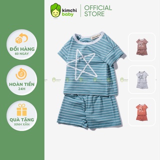 Bộ Cộc Tay Cho Bé Trai, Bé Gái Minky Mom Vải Cotton Hoạ Tiết Kẻ Ngang Ngôi Sao, Bộ Quần Áo Trẻ Em Mặc Nhà MKM2244