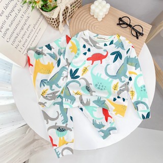 Đồ Bộ Bé Trai, Bé Gái Minky Mom Vải Thun Lạnh Hoạ Tiết Khủng Long Đạp Xe, Bộ Dài Tay Cho Bé Mặc Nhà Thu Đông MKMTD2155