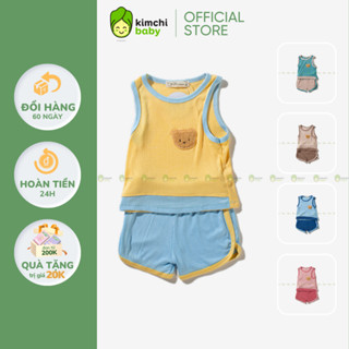 Bộ Dài Tay Bé Gái, Bé Trai KIMCHIBABY Vải Thun Lạnh Hoạ Tiết Gấu Bear Tay Lật, Bộ Quần Áo Trẻ Em Thu Đông KWTD2203