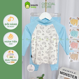 Bộ Dài Tay Thun Lạnh Cho Bé Trai, Bé Gái KIMCHIBABY Cổ 3P Hoạ Tiết Gấu Giáp Lăng, Đồ Bộ Mặc Nhà Cho Bé Thu Đông KWTD2209
