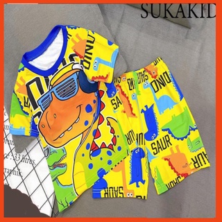 ( Chuyên sỉ lẻ Quần áo trẻ em ) Bộ đô bé trai in chuyển nhiệt 3D chất liệu thoáng mát co giãn 4 chiều hình khủng long xa