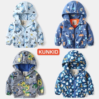 Áo gió bé trai lót lưới cao cấp Áo khoác gió trẻ em KUNKIDS lót lưới, chống nước, hoạ tiết hoạt hình siêu đẹp