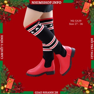Bốt cho bé gái 1 đến 2 tuổi da mềm cổ cao khóa kéo họa tiết sao màu đỏ mang êm thời trang phong cách Hàn Quốc GC43