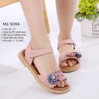 Sandal bé gái SD94 - dép quai hậu bé gái 3 - 12 tuổi da mềm quai ngang gắn hoa đế chống trơn thời trang phong cách Hàn