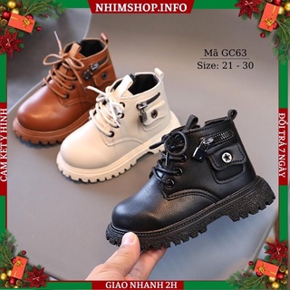 Giày boots cho bé trai 1 2 3 4 5 tuổi cổ cao bốt da mềm êm chân thể thao năng động và cá tính nâu đen trắng GC63