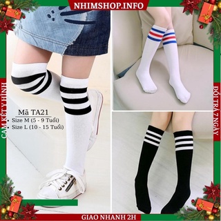 Tất trắng đen cổ cao dài đến đầu gối chân cho bé gái 4 - 12 tuổi thời trang phong cách Hàn Quốc Vớ nữ sinh đi học TA21
