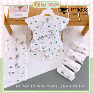 Quần áo sơ sinh bé gái trai cộc tay vạt chéo VT kids Unchi cho bé 3 4 5 6 7 8 kg khuy lệch giữ ấm bụng - 2X MART