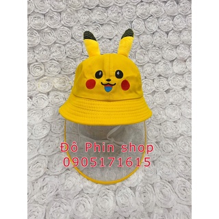 [Bé 3-7 tuổi] Mũ vành bucket Pikachu chống giọt bắn trẻ em, vòng đầu 52cm, tấm chắn có thể tháo rời, có dây quai nón