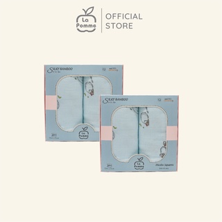Combo 2 K001 Set 5 Khăn sữa (30x30cm) + K002 Set 2 Khăn đa năng sợi tre lụa La Pomme (75x75cm) - Xanh Pastel