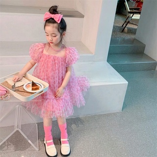 Đầm Công Chúa Tay Ngắn Phối Lưới Thiết Kế Mới Thời Trang Mùa Hè Theo Phong Cách Hàn Quốc Cho Bé Gái