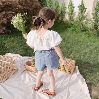 Bộ Áo Ngắn Tay Màu Trơn + Quần short denim Thời Trang Mùa Hè Hàn Quốc 2023 Dành Cho Bé Gái