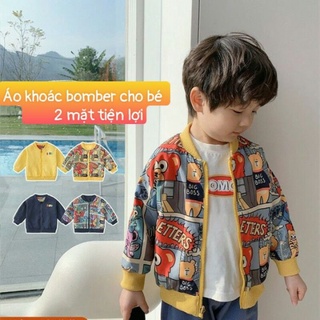 Áo khoác bomber hoạ tiết 2 mặt khoá kéo cho bé