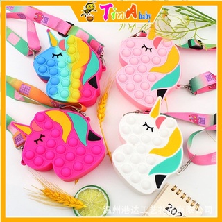 Túi đeo chéo cho bé gái kèm dây túi pop it kì lân mini cho bé đi chơi, du lịch tiện lợi E1076