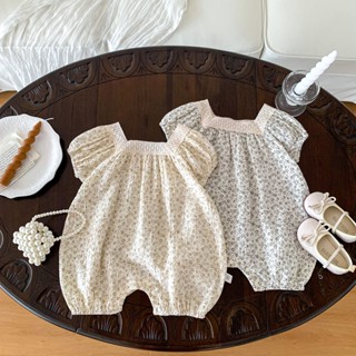Bộ Áo Liền Quần Tay Ngắn In Hoa Phong Cách Hàn Quốc Thời Trang Cho Bé Gái 0-24 Tháng Tuổi