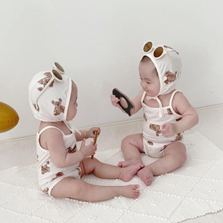 Bộ Đồ Bơi 2 Mảnh Áo Liền Quần Kèm Nón Hình Gấu Dễ Thương Dành Cho Bé Sơ Sinh 0-24 Tháng Tuổi