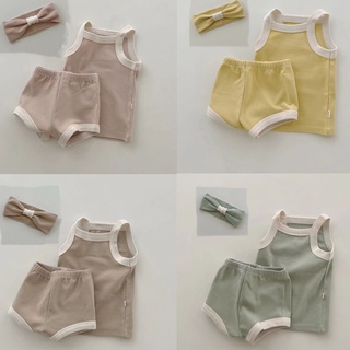 Bộ áo liền quần và băng đô vải cotton màu trơn dành cho bé trai và bé gái