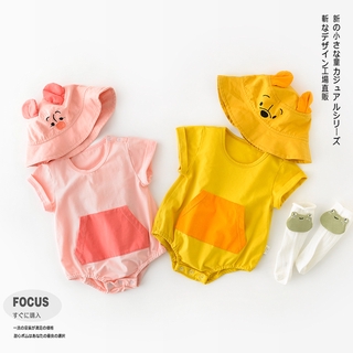 Bộ Áo Liền Quần Vải Cotton Tay Ngắn Phối Mũ Dễ Thương Cho Bé