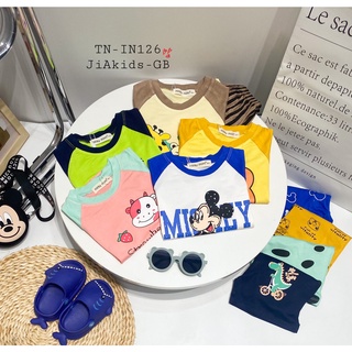 Bộ Cộc Tay THUN LẠNH MINKY MOM Giáp Lăng Phối Màu Quần Áo In Hình Dễ Thương Cho Bé TN-IN126