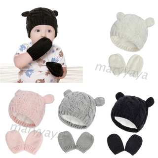 Bộ Nón Beanie Và Găng Tay Dệt Kim Thời Trang Thu Đông Cho Bé
