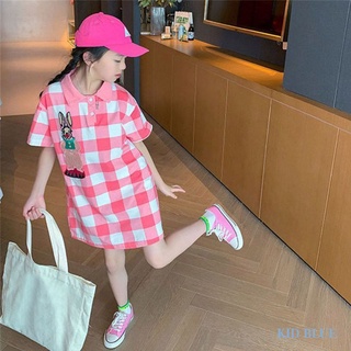 Đầm Dài Ngang Gối Màu Hồng Họa Tiết Kẻ Sọc Caro Và Cà Vạt Hoạt Hình Cho Bé Gái