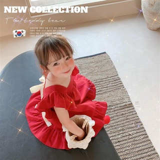 Đầm Công Chúa Cổ Vuông Thắt Nơ Lưng Thời Trang Mùa Hè Cho Bé Gái 3-8 Tuổi