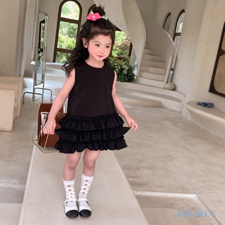 Đầm Công Chúa Không Tay Cổ Tròn Màu Trơn Thời Trang Mùa Hè Hàn Quốc Cho Bé Gái