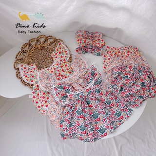 Váy hoa nhí tay bồng bé gái, váy hoa nhí thô bồng bềnh thân váy cách điệu cho bé