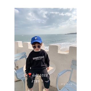 Bộ quần áo dài tay thu đông bé trai, bé gái, bộ thu đông có cổ họa tiết Essentialss phong cách Hàn Quốc cho bé