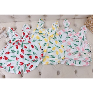 XẢ HÀNG Bộ cộc tay bé gái, bộ đũi áo cánh tiên hoa Tuylip nơ trước ngực cho bé