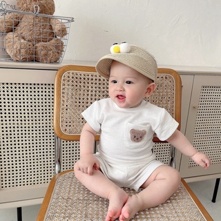 Bộ quần áo bé trai, Bộ tăm lạnh thêu mặt gấu nâu siêu mát cho bé
