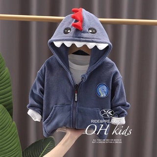 Áo khoác bé trai, áo khoác thu đông chất nỉ 2 da ấm áp mềm mại logo mũ thêu đắp hình KL siêu dễ thương cho bé