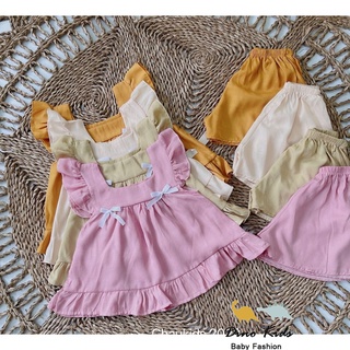 Bộ cộc tay bé gái, bộ áo cánh tiên chất đũi mềm cổ vuông phần ngực 2 nơ nhỏ cho bé