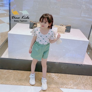 Bộ cộc tay bé gái, Bộ mùa hè đi chơi chất đũi nơ lưng kèm quần thô giả váy