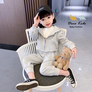 Bộ quần áo thu đông bé gái, bộ quần áo thu đông áo khóa mũ chất da cá QC xịn xò cho bé