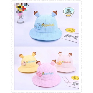 Mũ cho bé trai bé gái vành rộng thêu sóc cười tai thông , phù hợp 5 tháng - 4 tuổi