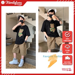 Đồ bộ bé trai Familylove - Đồ bộ bé trai bé trai in hình gấu dâu đáng yêu phong cách Hàn Quốc