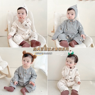 Set áo liền quần tay dài + mũ đội họa tiết quả lê cho bé sơ sinh