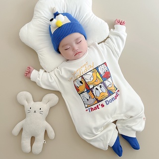Bộ Áo Liền Quần Tay Dài In Hoạt Hình Dễ Thương Thời Trang Xuân Thu Cho Bé Sơ Sinh Từ 0-6 Tháng