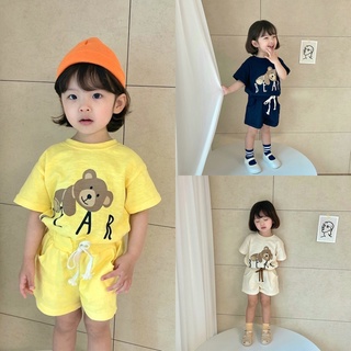 Set Áo Thun Tay Ngắn & Quần Short In Hình Gấu Dễ Thương Cho Bé Trai & Gái