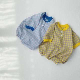 Áo Liền Quần Tay Ngắn Chất Liệu Cotton Họa Tiết Sọc Caro Cho Bé Trai 0-18 Tháng Tuổi
