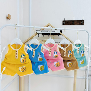 Bộ ngắn tay ba lỗ sát nách thun lạnh Minky quần phối viền kín thân cho bé