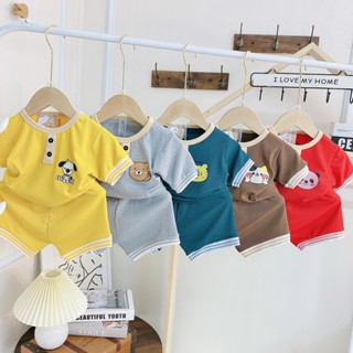 Đồ bộ cộc tay bé trai, quân áo thun tăm lạnh mềm mát co giãn 4 chiêu bé gái khuy giữa QN17