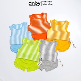 Bộ quần áo trẻ em hai dây sọc phối màu Anby chất liệu cotton thun lạnh cho bé từ 8-24kg